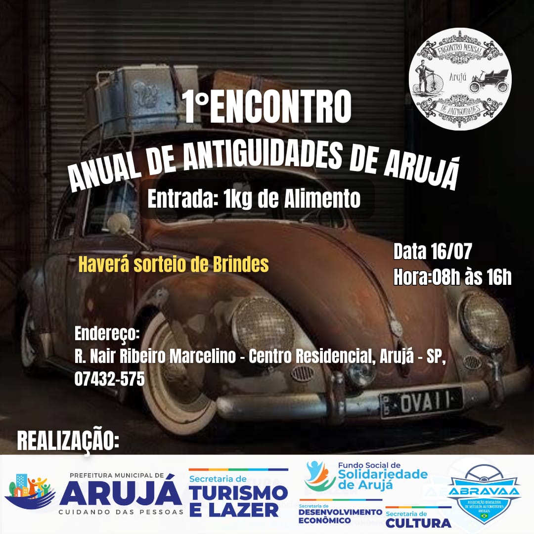 Esse evento é uma realização do Encontro Mensal de Antiguidades e a Prefeitura de Arujá.