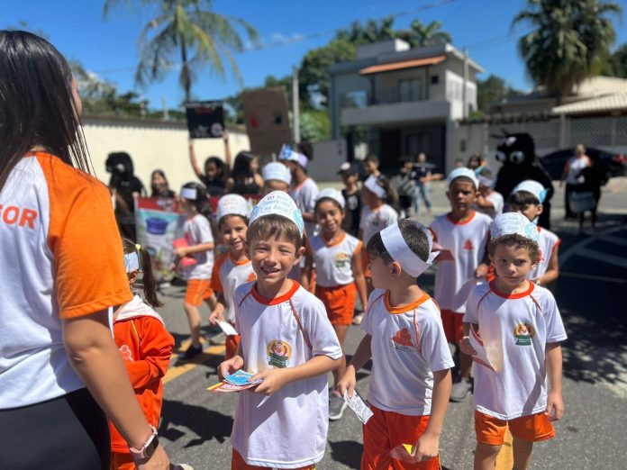 Os alunos da Escola Municipal Professora Célia Leonor Lopes Lunardini, no bairro Itapema, em Guararema, realizaram nesta segunda-feira (23/03) uma caminhada educativa pelas ruas da comunidade. A iniciativa uniu o combate ao mosquito Aedes aegypti e a conscientização sobre o Dia Mundial da Água, transformando o aprendizado de sala de aula em uma ação direta de mobilização social.