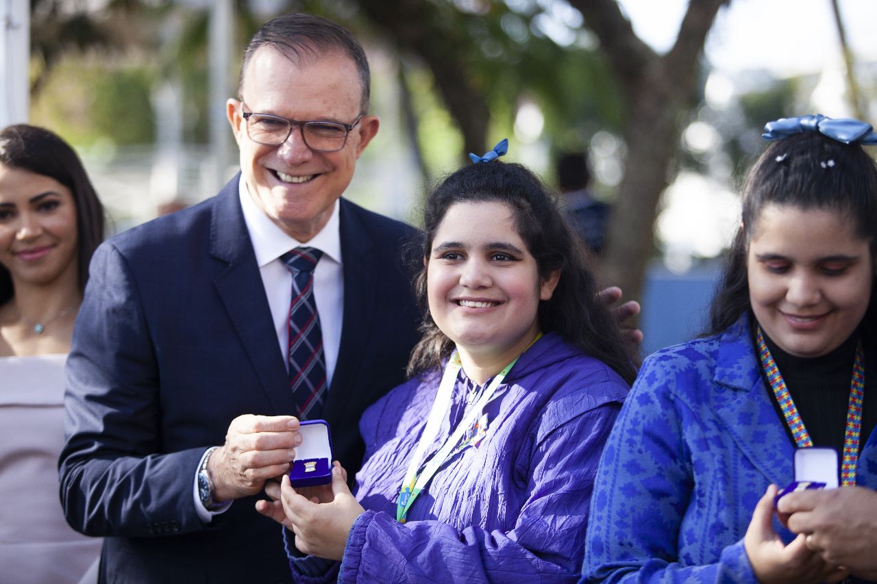 Foi uma solenidade carregada de emoção e espírito de civilidade, com os Hinos Nacional e o de Arujá interpretados pelo Coral do Centro de Convivência da Criança e do Adolescente (CCCA) Centro, sob a regência do maestro João Tadeu, e pela intérprete de Libras, Ana Maria Machado. De autoridades compareceram o deputado federal Alencar Santana, o assessor Sergio Lacerda representando o deputado federal Marco Bertaiolli, o secretário municipal de Governo, Rogério da Padaria, demais secretários presentes, vereadores, servidores e munícipes. O desfile da Guarda Mirim, sob o comando do tenente João Batista e a presença do Clube de Desbravadores Jaspe de Arujá, comandado por Vicente Diogo de Oliveira Júnior, deram um toque especial à cerimônia.