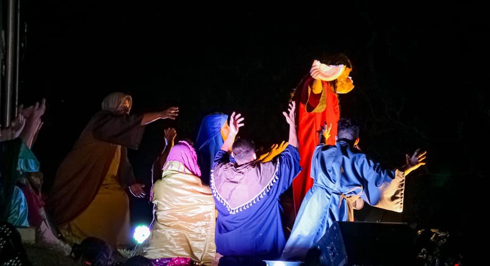 Relatando os passos de Jesus durante a Semana Santa, a peça traz detalhes de diversos momentos como o Monte das Oliveiras, a traição e o enforcamento de Judas, a crucificação, sepultamento e ressurreição de Cristo. O tema Eis o Homem (João 19:05) foi escolhido para representar a volta da peça teatral, fazendo uma referência ao momento em que Jesus é apresentado ao povo.