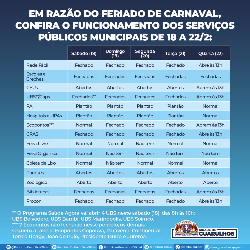Confira com o JM Metrópole o que funciona no dias de carnaval em Guarulhos.