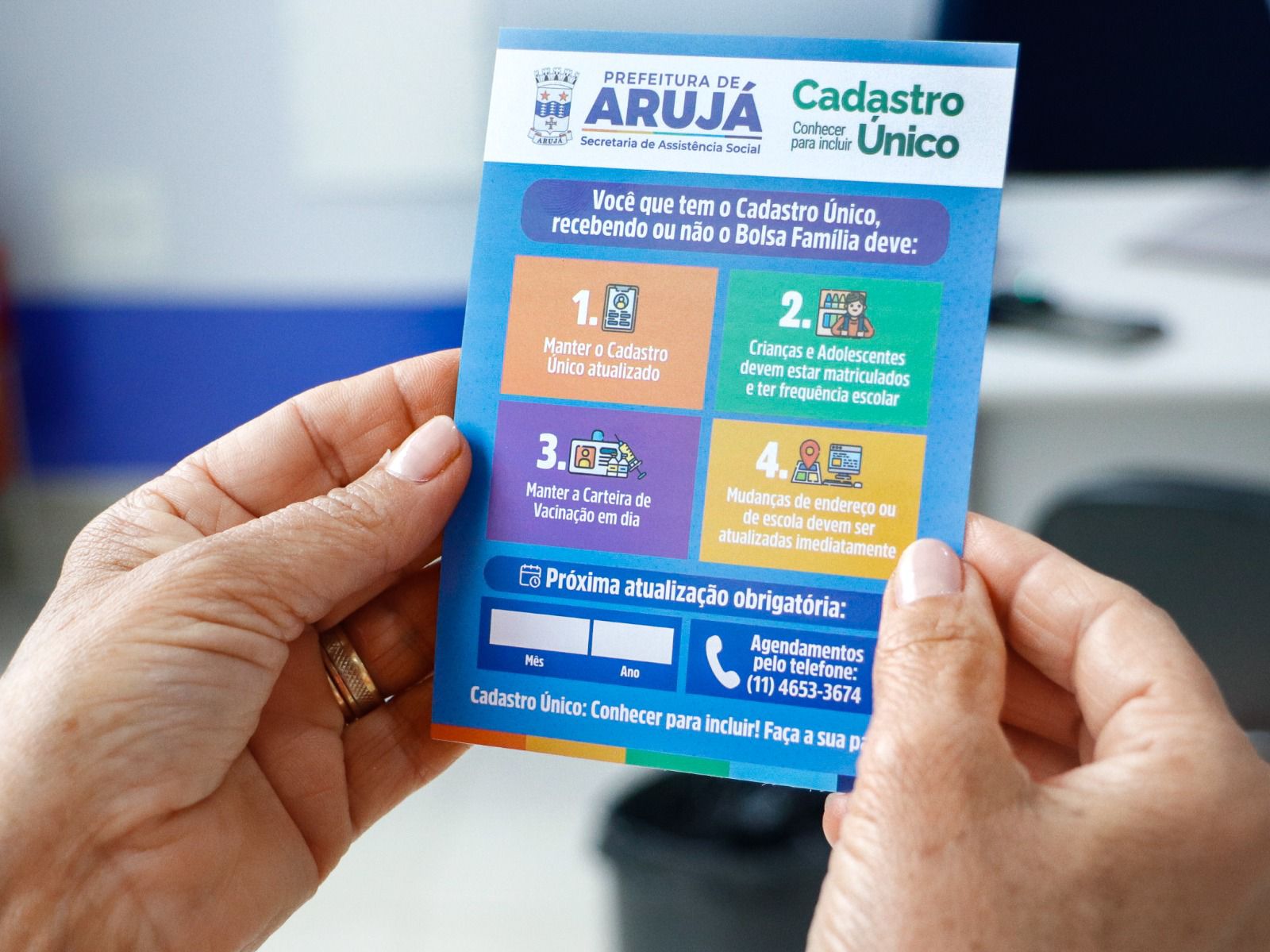 A Prefeitura de Arujá informa que os serviços socioassistenciais municipais terão alterações no funcionamento devido às festividades de fim de ano. Nos dias 24, 25, 31 de dezembro e 1º de janeiro, o CadÚnico – Cadastro Único de Arujá, os Centros de Referência de Assistência Social (CRAS), o Centro de Referência Especializado de Assistência Social (CREAS) e a Secretaria Municipal de Assistência Social não realizarão atendimentos.
