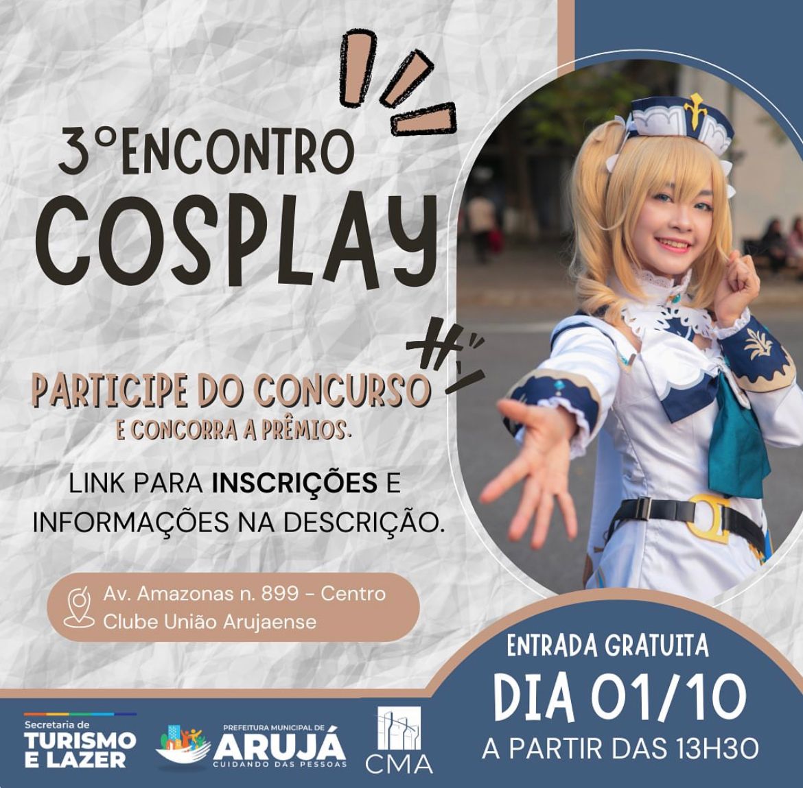 Neste domingo (01), a Prefeitura de Arujá, em colaboração com a Secretaria Municipal de Turismo e Lazer, vai realizar no Clube União Arujense, localizado na Avenida Amazonas, 899, a partir das 13h30, o 3º Encontro Cosplay da cidade.