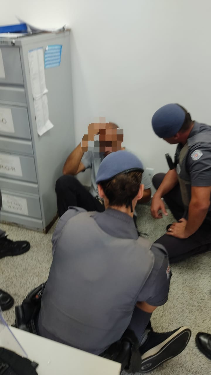 Durante as atividades de polícia ostensiva, policiais foram chamados via Copom para atendimento de apoio a viaturas da GCM em ocorrência onde um indivíduo com faca, estava confinado em uma sala pelo CEU Cerejeiras, mais precisamente pela Rua Sango Matsuzaki N°124.