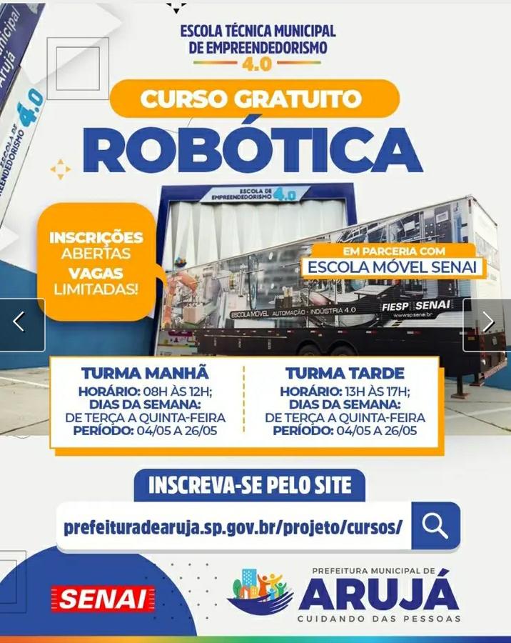 A Escola Técnica Municipal 4.0 está com as inscrições abertas para o curso de Robótica. A escola conta com parceria firmada com o Senai, que trará seu laboratório de robótica móvel para a unidade.