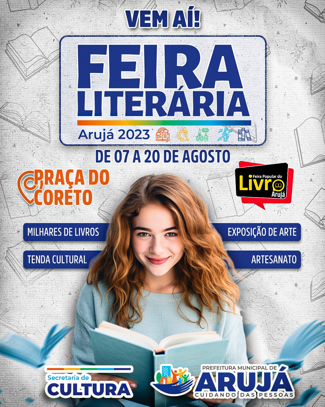 A Praça do Coreto, no Centro de Arujá, será transformada numa aeronave para mundos reais e imaginários, no período de 7 a 20 de agosto. É a Feira Literária que chega com milhares de livros, tenda cultural, exposição de artes e artesanato. Promovido pela Prefeitura de Arujá, por meio da Secretaria Municipal de Cultura, o evento envolverá os visitantes com a saudável atmosfera da literatura e das artes