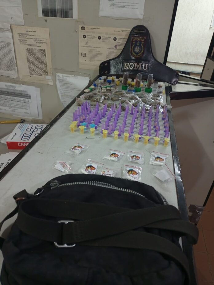 Com ele foi localizada uma pochete contendo substâncias, aparentemente entorpecentes.