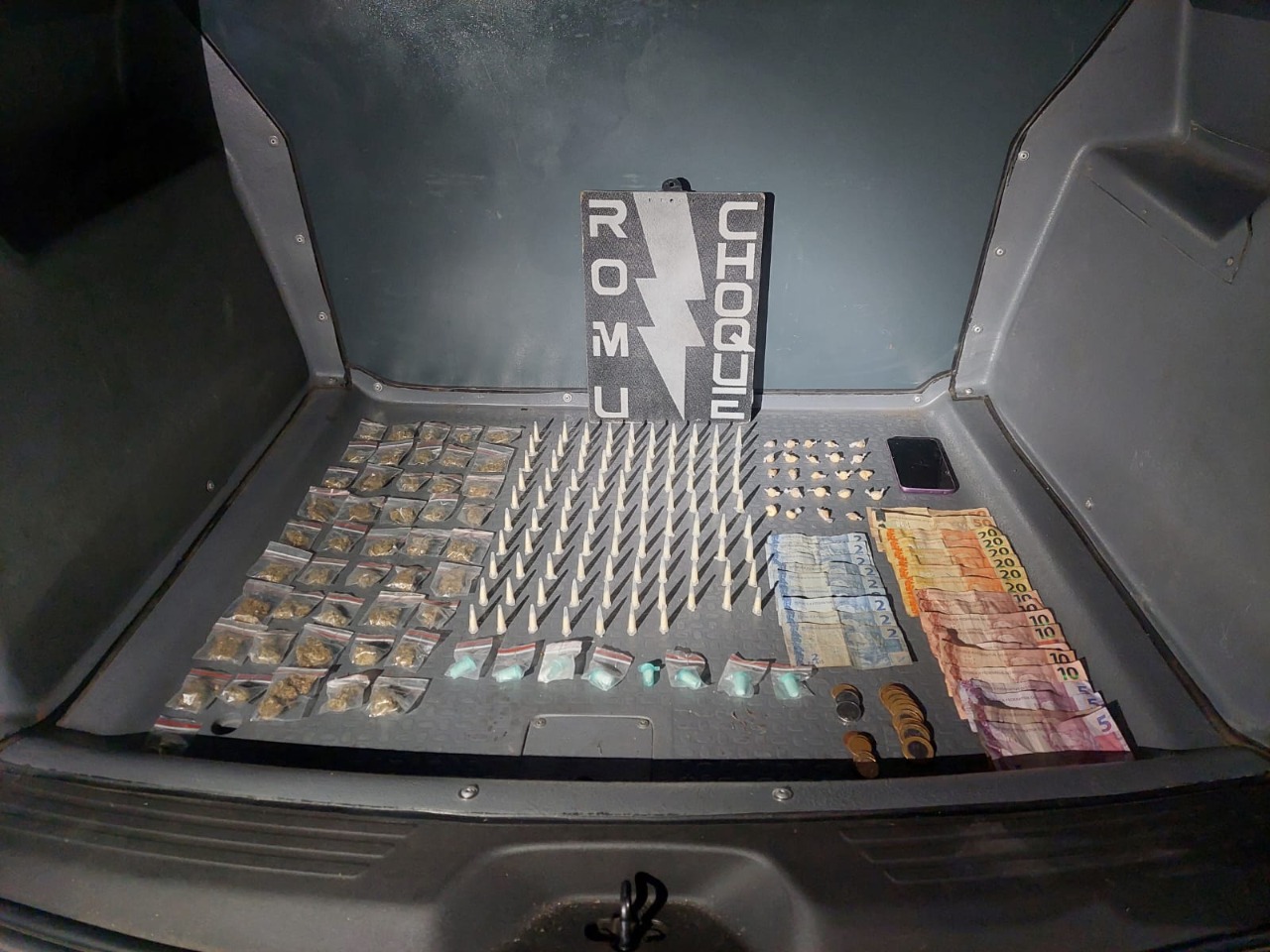 A ocorrência na Vila Amélia, conforme o comandante, foi realizada através de patrulhamento da equipe da Ronda Ostensiva com Moto (ROMO), nesta quinta-feira (10/11), após um homem ser flagrado trocando objetos, de forma suspeita, com outro indivíduo.