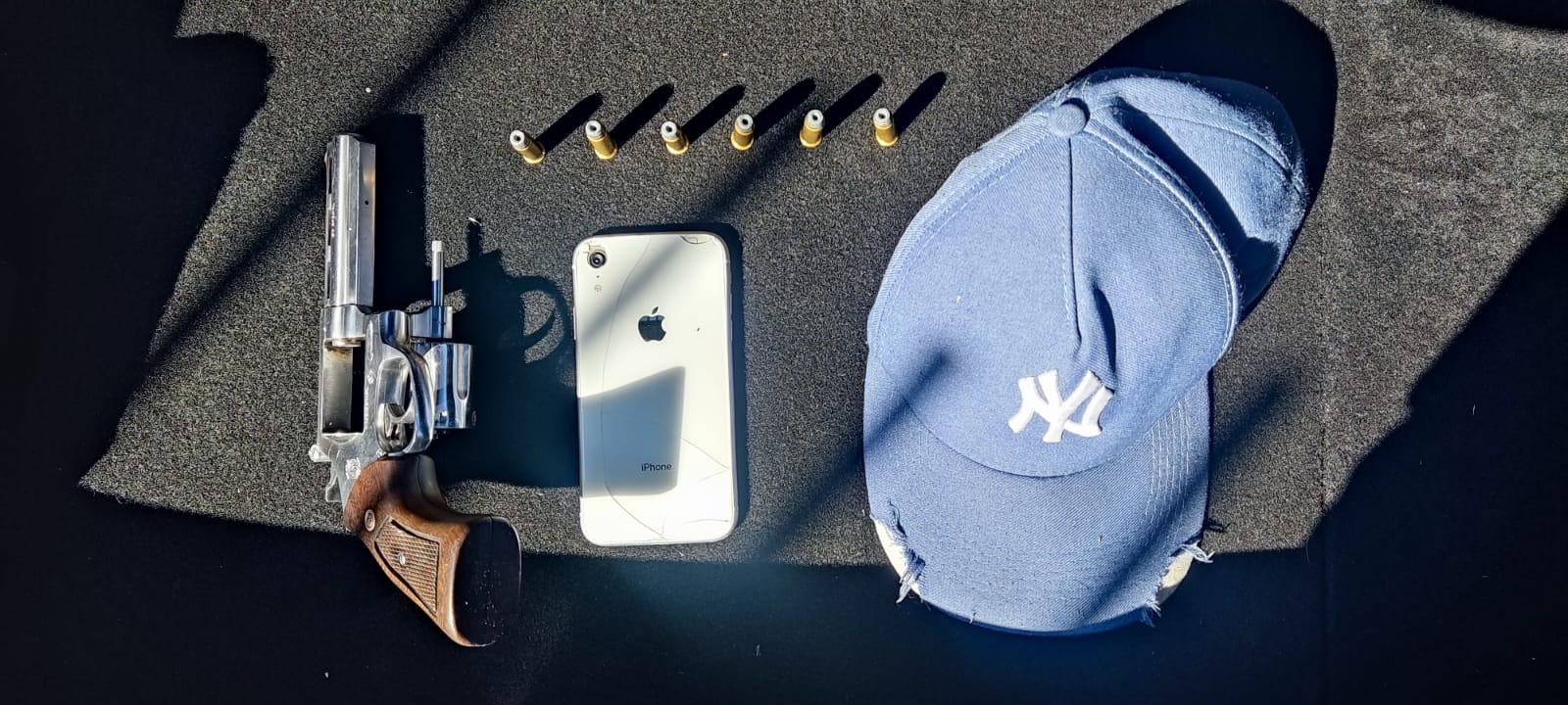 “Após localizarem o suspeito, nossos agentes tentaram realizar uma abordagem, mas o homem saiu em fuga para um terreno próximo se desvencilhando de um objeto cromado, sendo identificado posteriormente como uma arma de fogo. Em seguida, a equipe alcançou com êxito o indivíduo que justificou a evasão, pois cumpria liberdade provisória por um crime anteriormente condenado”, explicou o comandante.