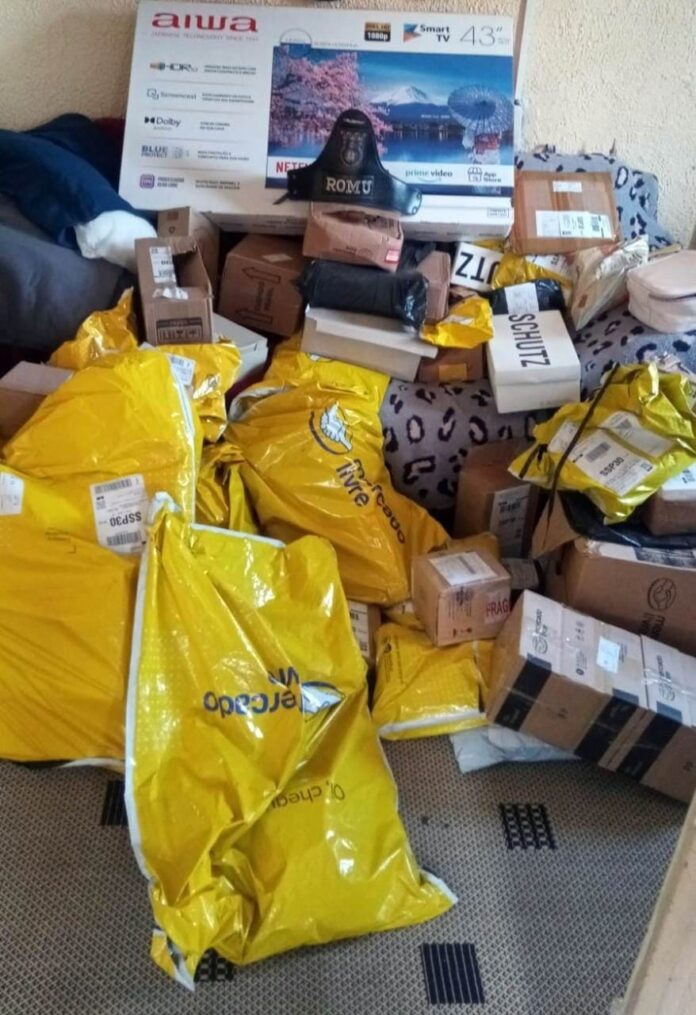 Após coletar informações com os denunciantes, a equipe foi ao local apontado e deparou com um homem, que tentou fugir ao avistar as viaturas, mas foi interceptado. Ao ser questionado, ele informou que algumas mercadorias foram deixadas em sua residência, na mesma via, por um veículo que não soube descrever, e permitiu a entrada em sua casa. Na verificação foram encontrados pacotes com diversos produtos do Mercado Livre.