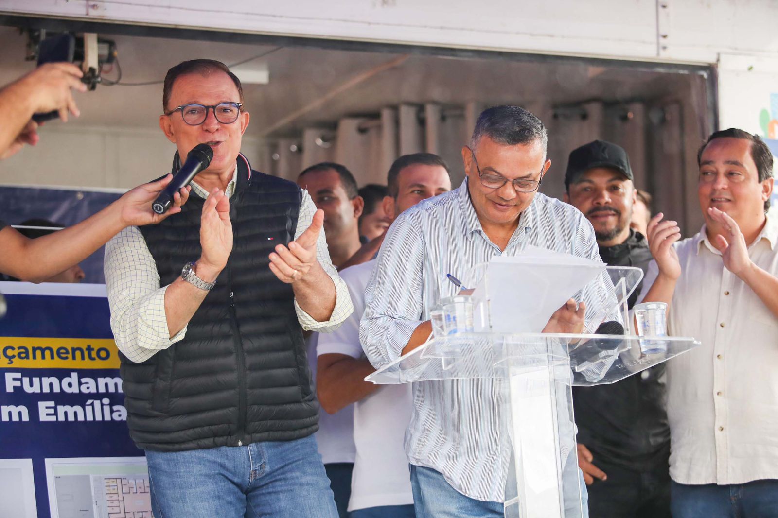 Além do prefeito e do secretário de Serviços, estiveram presentes o vice-prefeito Betinho, vereadores da Câmara Municipal, incluindo Vinícius Pateta (que destinou emenda para a construção do PEV), o secretariado, o representante da empresa Empenho (que construirá a nova UBS do Jardim Emília) e a população local.