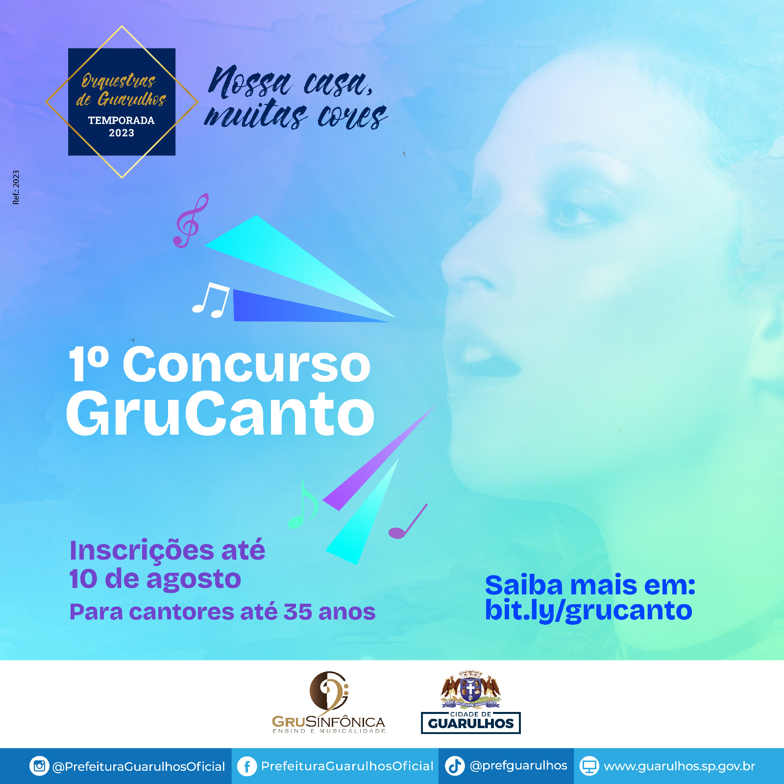 Até o dia 10 de agosto a Prefeitura de Guarulhos está com inscrições abertas para o GruCanto, o primeiro concurso de canto lírico da cidade. A iniciativa, destinada a crianças, jovens e adultos de até 35 anos, é a grande novidade da temporada 2023 da GRU Sinfônica e da Orquestra Jovem e integra o II Festival de Ópera de Guarulhos.