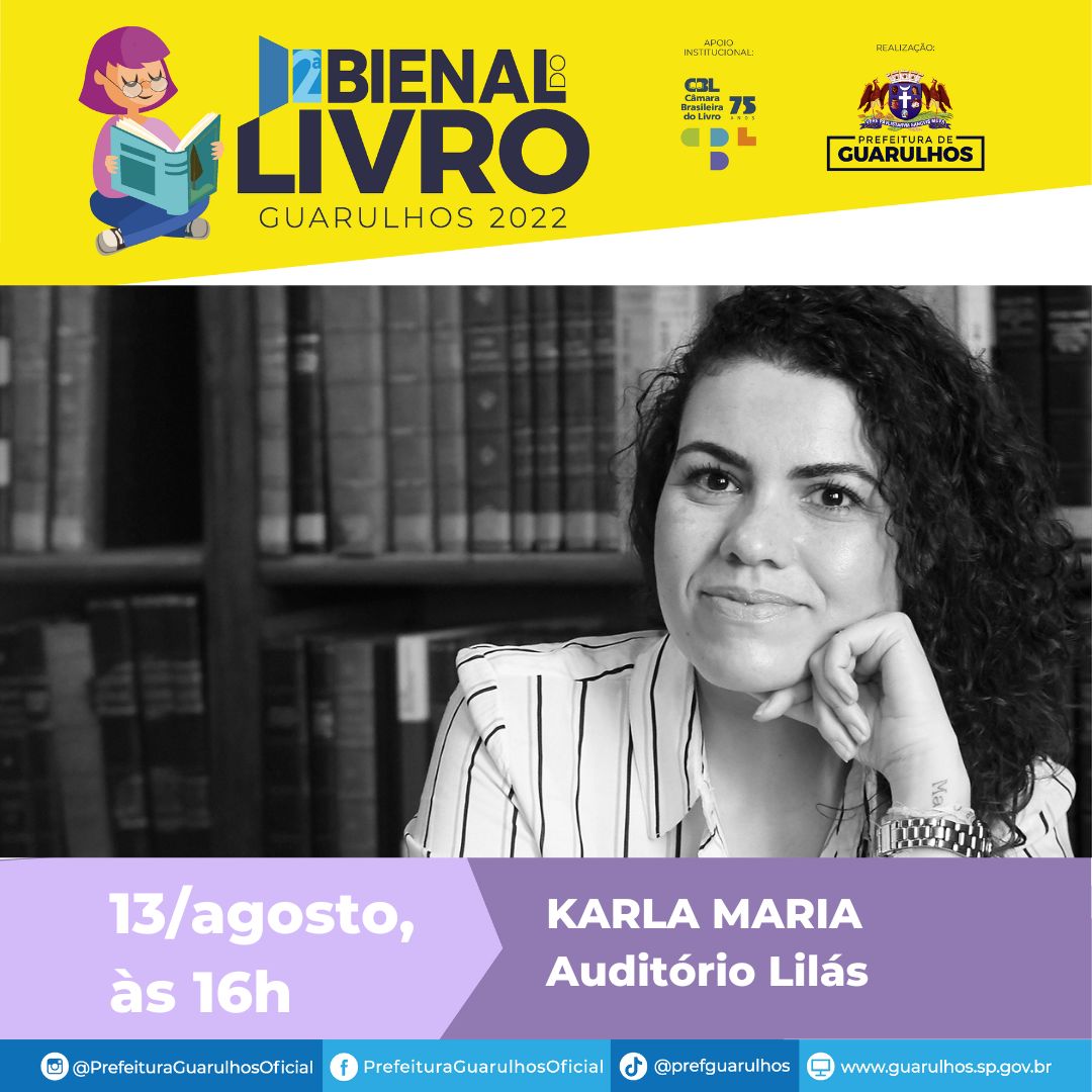 Para mais informações acesse as redes sociais da autora @KarlaMariaBRA ou da própria Bienal (@bienaldolivrogru).