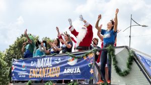 O Bom Velhinho continua levando alegria para a criançada arujaense e, nesta quinta-feira (18), estará com os seus ajudantes nos bairros Vila Arujá, Retiro, Tupã, Vila Santo Antônio, Estância Arujá, São Domingo e Penhinha. A atividade, que integra a ação Papai Noel nos Bairros pelo Natal Solidário, promovida pela Prefeitura de Arujá e organizada pelo Fundo Social de Solidariedade, segue até o dia 19 de dezembro, com a expectativa de presentear cerca de 5 mil crianças.