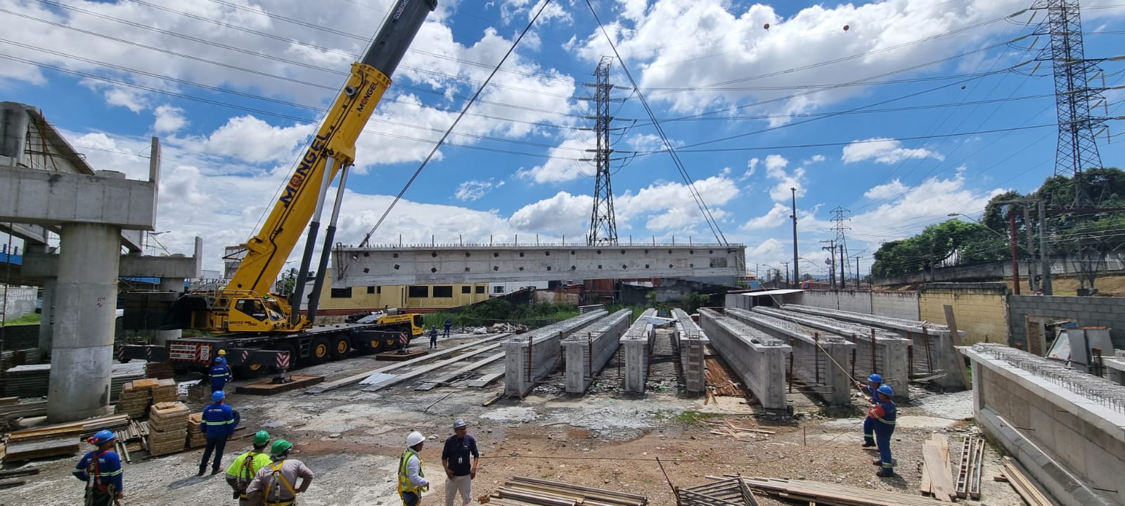 Operação segue em ritmo acelerado e estrutura ganha instalação das vigas de concreto protendido antes da implantação do tabuleiro