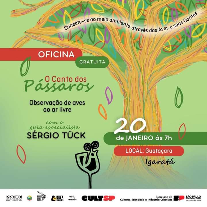 A oficina será ministrada por SÉRGIO TÜCK. Ele é artista-educador pós-graduado em Ed. Musical pela UFSCar, licenciado em biologia e observador de aves, divulgador da avifauna no @avesatibaia, idealizou o Projeto Ajuritiba na rede pública, criador do jogo Ases. Vencedor do Prêmio Nacional Arte na Escola Cidadã em 2020 (IAC), trabalhou com José Pacheco no Aprender em Comunidade, membro da Magnífica Orchestra de Músicas do Mundo com Gabriel Levy, educador ambiental em escolas tendo participado do Ilhabelabirdweek e Avistar.