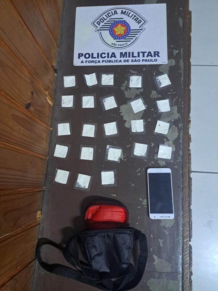 A PM apreendeu com a suspeita uma bolsa e uma sacola contendo 13 invólucros de cocaína e mais 10 porções prensadas da mesma droga. O comparsa, surpreendido ao retornar ao ponto de venda, ainda tentou se livrar de objetos jogando-os em um rio ao ser abordado. O caso foi registrado como tráfico de entorpecentes (Art. 33) no Distrito Policial de Arujá, após triagem em Santa Isabel.