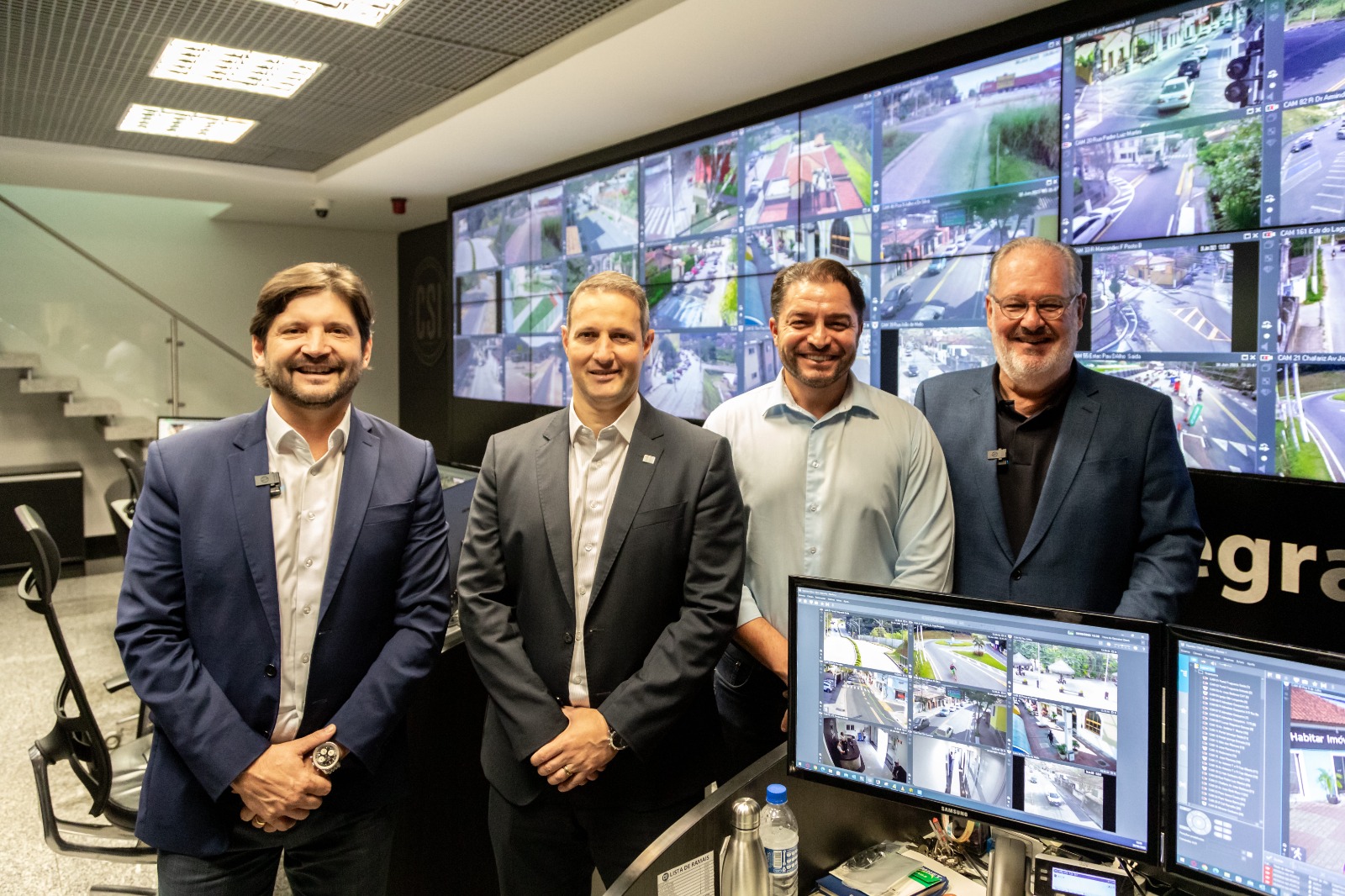 A visita também foi acompanhada pelo capitão Flávio Roberto da Silva, da 3ª Companhia do 17º Batalhão de Polícia Militar Metropolitano (BPM/M), e ao mostrar o funcionamento das telas que gerenciam as imagens em tempo real de diversos pontos da cidade, o prefeito Zé detalhou o trabalho do CSI, que é referência não apenas regional, mas também estadual, atuando na prevenção de delitos e também na resolução de todo o tipo de crimes.