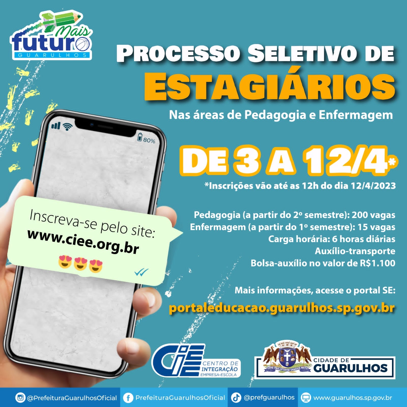 Para mais informações acompanhe as divulgações no site do CIEE, da Prefeitura de Guarulhos e no Portal da Educação (portaleducacao.guarulhos.sp.gov.br).