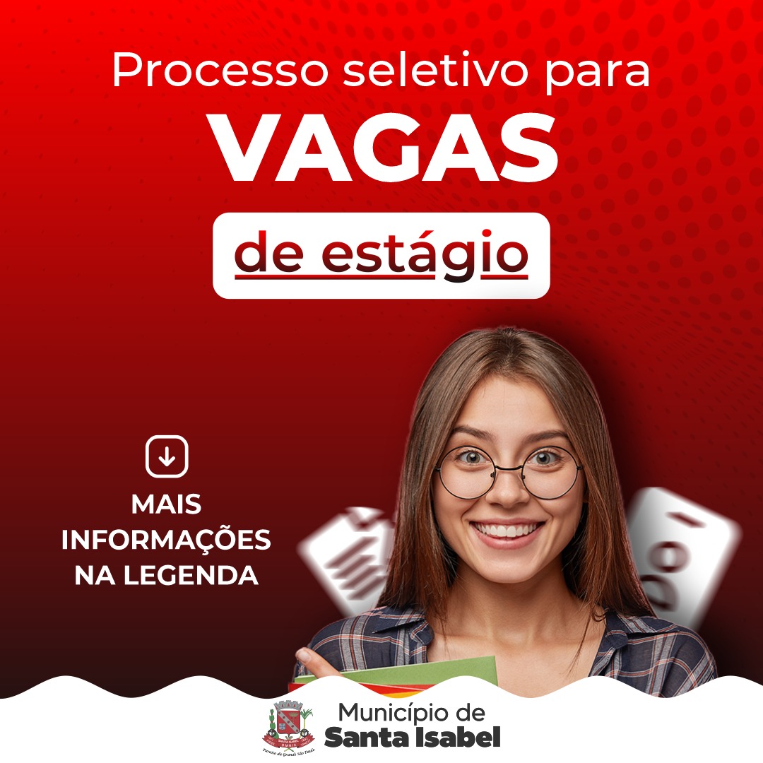 Os estudantes dos níveis médio, técnico e superior podem participar do processo seletivo para contratação de novos estagiários da Prefeitura de Santa Isabel. As inscrições e provas on-line vão do dia 13 a 28 de fevereiro.