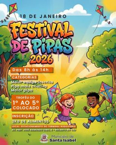 A Prefeitura de Santa Isabel elaborou um cronograma de atividades educativas, culturais e de lazer para o mês de janeiro, voltado a crianças, jovens e famílias. A programação inclui oficinas de tecnologia, atividades lúdicas em espaços culturais e o tradicional Festival de Pipa, ocupando diversos pontos da cidade durante o período de recesso escolar.
