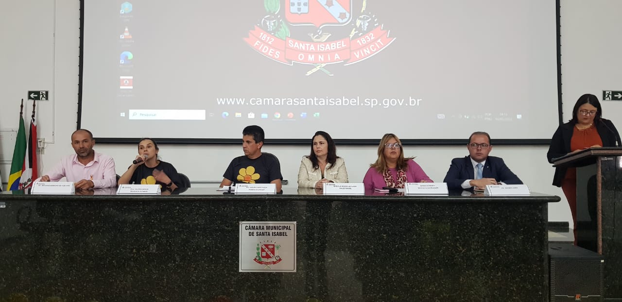 Compondo a mesa do evento estiveram presentes: o prefeito de Santa Isabel, Dr. Carlos Chinchilla; a secretária municipal de Saúde, Helena Inácio; a secretária municipal de Educação, Maria Donizete; o presidente da subseção isabelense da Ordem dos Advogados do Brasil (OAB), Dr. Vagner Lobo, e o advogado, Dr. Antônio Barreto de Siqueira.
