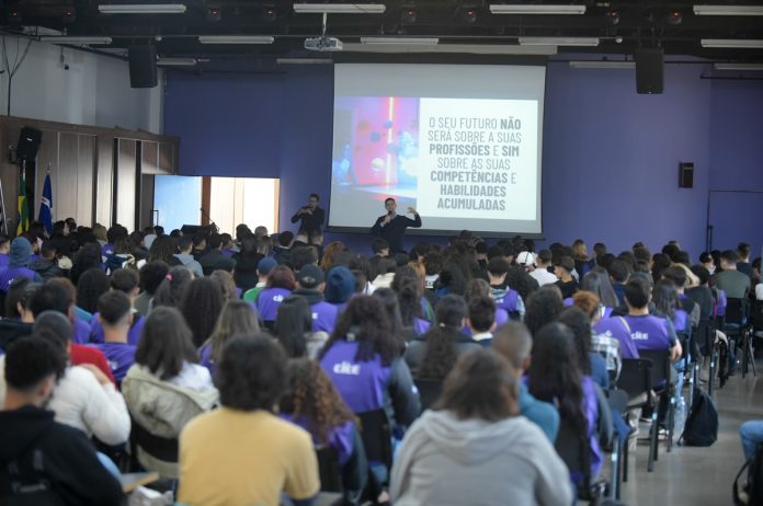 Segundo o palestrante, apenas 30% dos empregos atuais existirão no futuro e 65% da população vai trabalhar em ocupações que ainda não existem. “O futuro não será sobre profissões, mas sobre as competências, habilidades e conhecimentos acumulados,” afirmou.