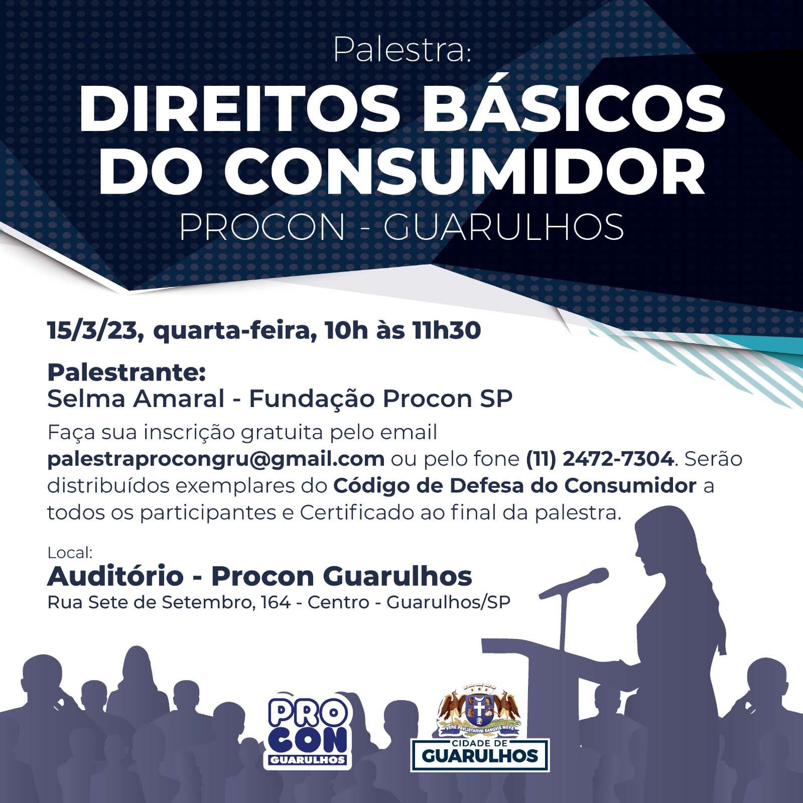 O Procon Guarulhos promove no Dia Internacional do Consumidor, celebrado na próxima quarta-feira (15), a palestra educativa gratuita Direitos Básicos do Consumidor, das 10h às 11h30, no auditório do órgão (rua Sete de Setembro, 164, Centro).