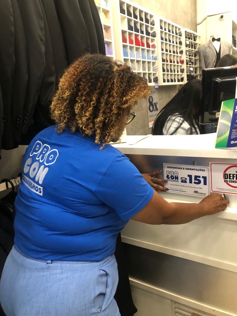 Desde segunda (dia 13) até sexta-feira (17) a Coordenadoria de Proteção e Defesa do Consumidor de Guarulhos promove fiscalizações orientativas nas lojas do Centro com a distribuição da placa 151 do Disque-Denúncia, que destaca o telefone do órgão para o recebimento de denúncias de consumidores sobre eventuais irregularidades nos estabelecimentos comerciais.