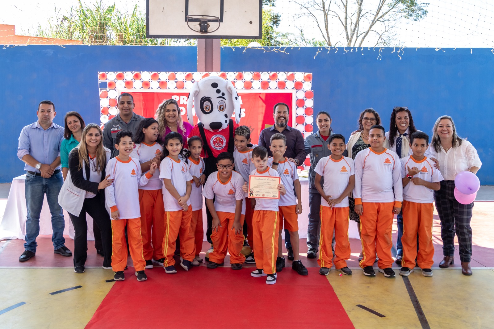 Além de representantes da Secretaria Municipal de Educação e do Corpo de Bombeiros, a formatura das crianças também teve a participação do animado mascote dos Bombeiros, o cão Faísca, um simpático cãozinho dálmata, personagem que faz a alegria dos pequenos e tira fotos com eles em frente ao caminhão dos Bombeiros.