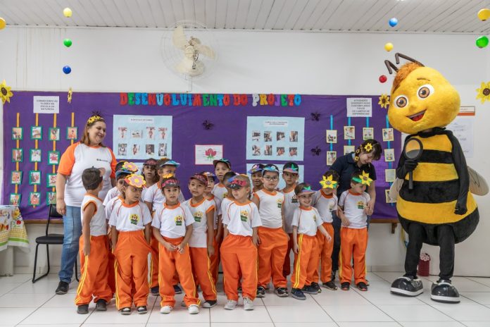 Além de “cooperação”, outro termo chave é “responsabilidade social”. Sendo assim, um tema recorrente – e que vai ao encontro ao conteúdo aplicado em sala de aula – é a alimentação saudável. Em ações voltadas para as diferentes faixas etárias, os alunos são incentivados a conhecer e experimentar sobre hortaliças, verduras e legumes. E tudo isso é conduzido por uma simpática mascote: uma abelha.