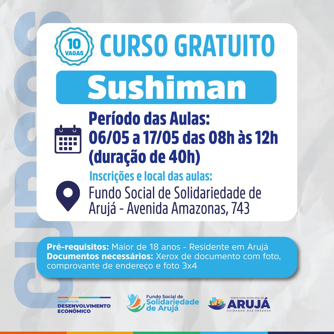 InícioArujáPROQUALI: FUNDO SOCIAL DE SOLIDARIEDADE DISPONIBILIZA VAGAS PARA CURSOS DE SUSHIMAN E...