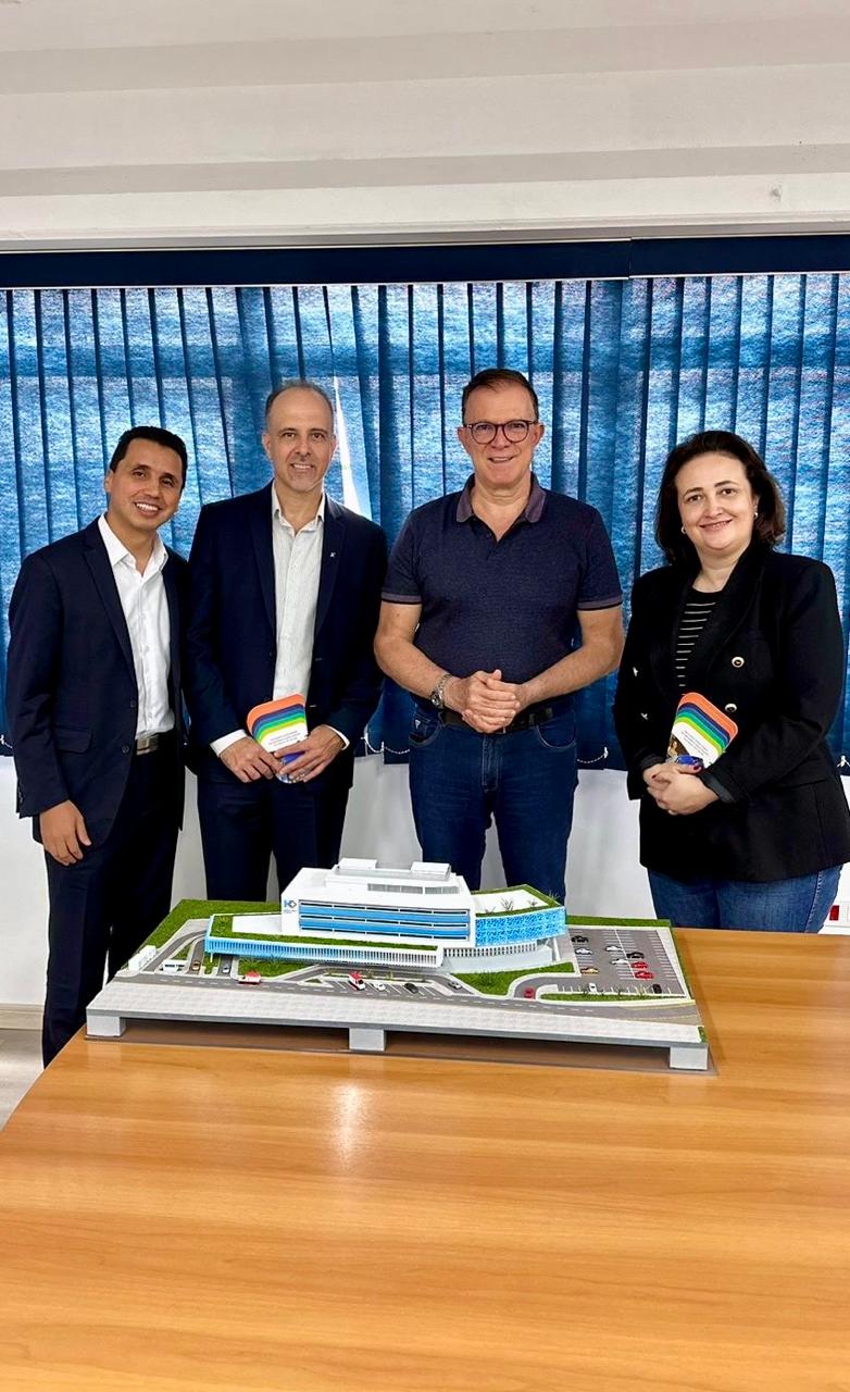 O prefeito de Arujá, Luis Camargo, o Dr Camargo, recepcionou a superintendente de rede Flávia Nogueira, o superintendente executivo de Governos, Cleber Alessandro, e o gerente geral de rede, Sandro Sanches, que conheceram as obras e puderam constatar o ritmo acelerado da construção, que tem previsão de término estimada para 2026.