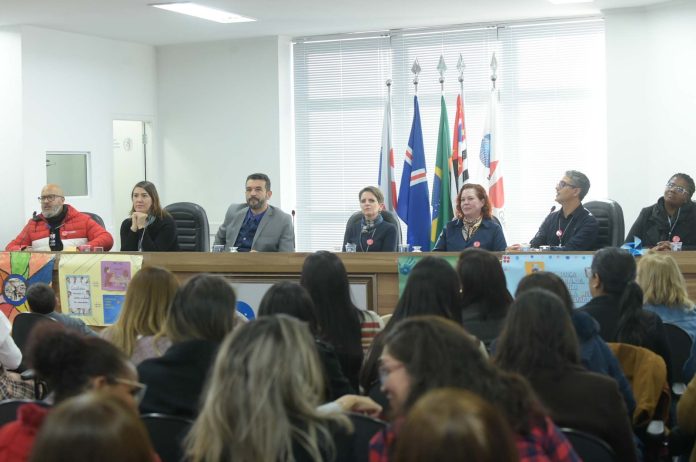A apresentação musical de crianças do projeto Cidadania em Ação, desenvolvido pela Cáritas Diocesana de Guarulhos, por meio do Serviço de Convivência e Fortalecimento de Vínculos da Prefeitura de Guarulhos, abriu nesta quarta-feira (25) o seminário Trabalho Infantil e Proteção ao Adolescente Trabalhador, que reuniu um público de mais de 70 pessoas, entre membros da sociedade civil e do poder público municipal, no auditório da OAB Guarulhos, no Centro.