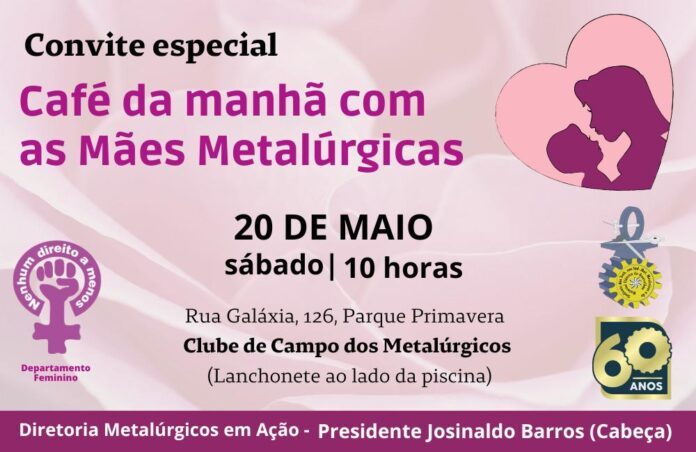 O Sindicato dos Metalúrgicos de Guarulhos e Região homenageará as mães sócias, em café da manhã especial no Clube de Campo, Parque Primavera. Será sábado, dia 20, a partir das 10 horas.