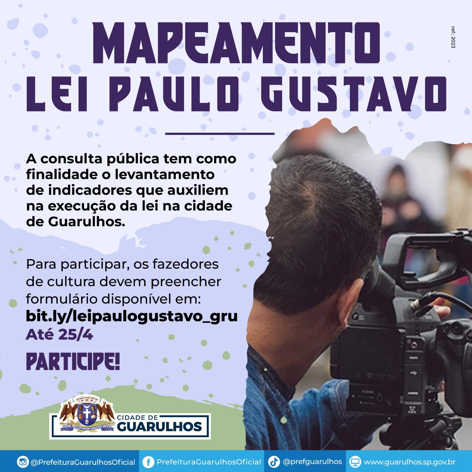 A lei Paulo Gustavo (lei complementar 195, de 8 de julho de 2022, disponível em https://www.planalto.gov.br/ccivil_03/leis/lcp/lcp195.htm), foi criada com o objetivo de apoiar fazedores de cultura diante dos desafios impostos pela pandemia de covid-19. Além do mapeamento, os interessados poderão contribuir com sugestões ou o envio de dúvidas sobre a lei e sua implementação no município.