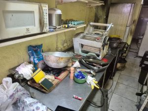 Na interdição original, motivada por denúncias via Ouvidoria Municipal, os agentes constataram graves irregularidades operacionais e ambientais. Entre os problemas identificados estavam o acúmulo de gordura em equipamentos, móveis e utensílios, lixo espalhado pelo chão e a ausência de divisória adequada entre o banheiro e a área de manipulação de alimentos.